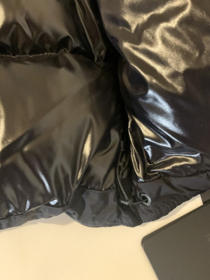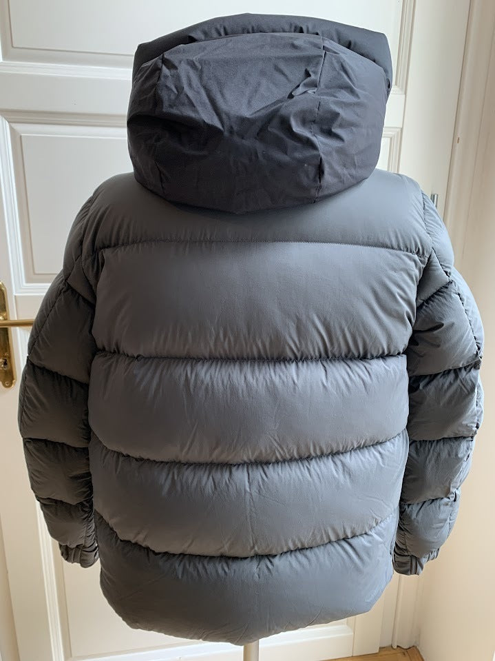 مصنوع من قماش Long Saison غير اللامع؛ بطانة من النايلون اللامع؛ حشوة من الريش؛ زر مخفي وسحاب للإغلاق؛ جيوب أمامية بإغلاق كبس مخفي؛ جيب على الصدر بسحاب للإغلاق؛ غطاء رأس وحاشية برباط مطاطي؛ حروف شعار منقوش؛ شعار أسود غير لامع؛ مقاس عادي؛ الغلاف: 100% نايلون؛ البطانة: 100% نايلون؛ بطانة غطاء الرأس: 100% نايلون؛ غطاء الرأس: 100% نايلون؛ الحشو: 90% زغب، 10% ريش