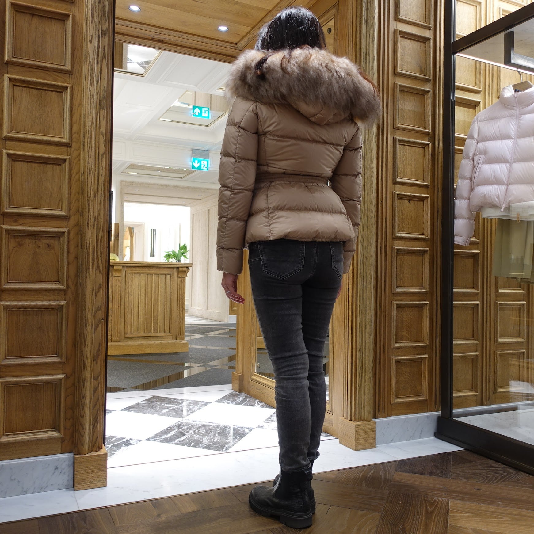 قطعة شتوية متطورة، تتميز سترة Boed Short Down بظلية أنثوية تتميز بحزام خصر وهي مصنوعة من قماش طويل الموسم مع حواف من جلد الغنم الفاخر.