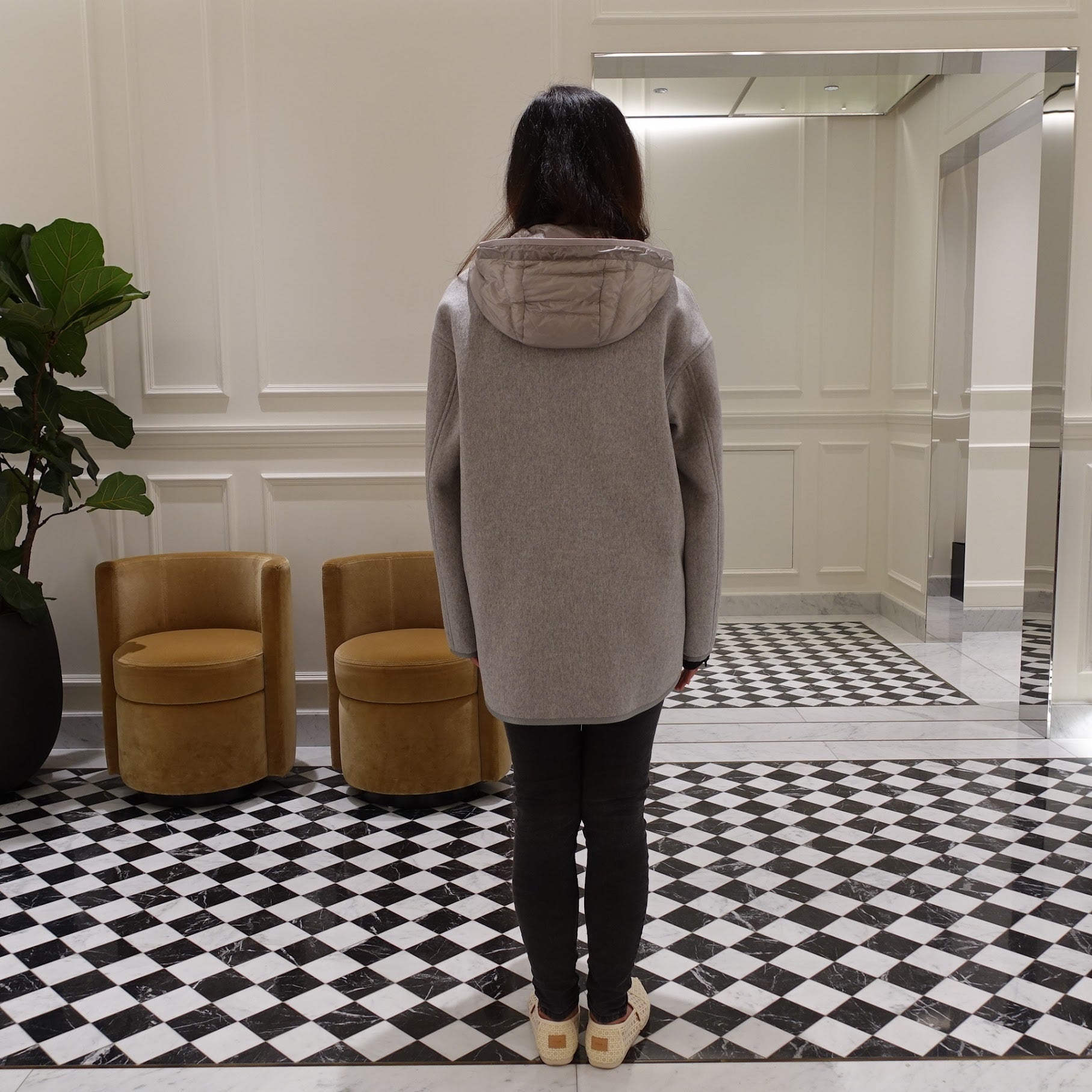 パートA: 本体: 羊毛 90% カシミヤ 10%;皮革装飾部分: 牛 革 ;; パートB: 表地: ナイロン 100%;裏地: ナイロン 100%;フード裏地: ナイロン 100%;皮革装飾部分: 牛 革 ;詰物: ダウン 90% フェザー 10%
